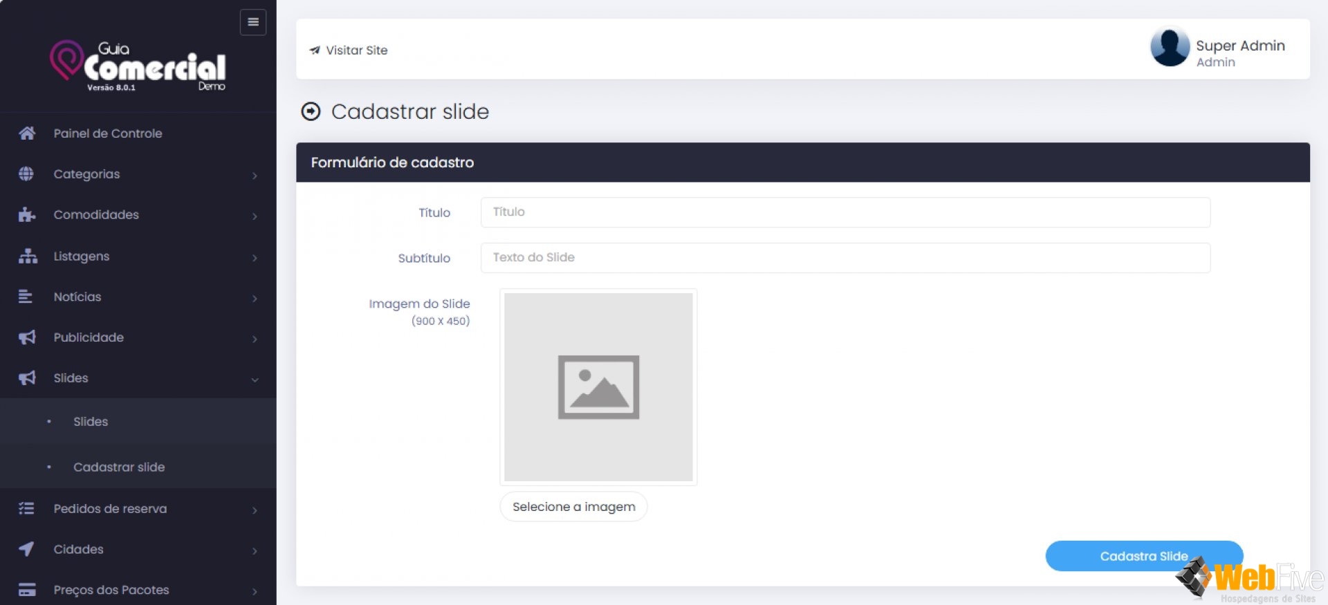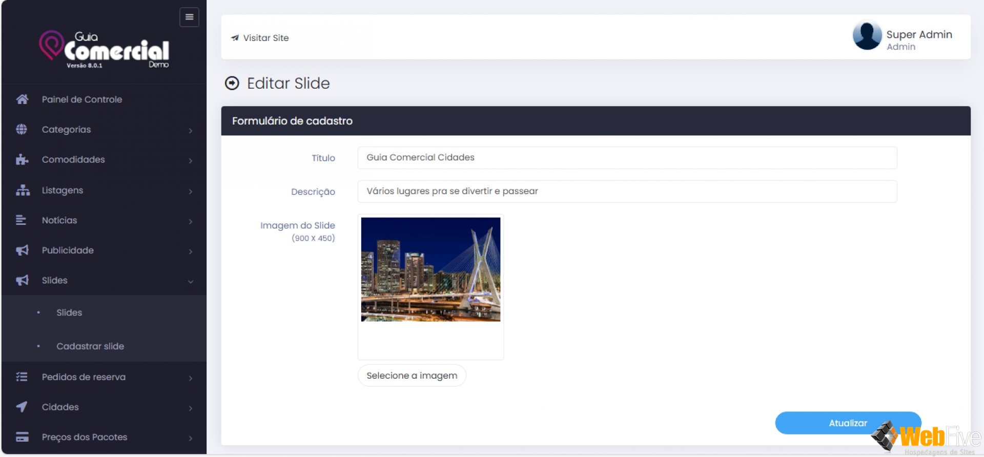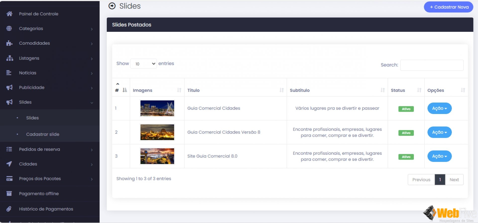 O Módulo Slide é a solução perfeita para tornar seu site mais dinâmico e atrativo! Com ele, você pode exibir imagens, banners promocionais e destaques de forma responsiva e com transições modernas, capturando instantaneamente a atenção dos visitantes.